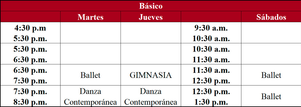 Nunca es tarde para comenzar a bailar. El grupo básico es para jóvenes y adultos, bien sea para los que vienen del grupo elemental o para quienes deseen comenzar su formación, al igual que el grupo elemental el plan está diseñado de manera anual y la metodología de trabajo es especialmente adecuada para jóvenes y adultos.