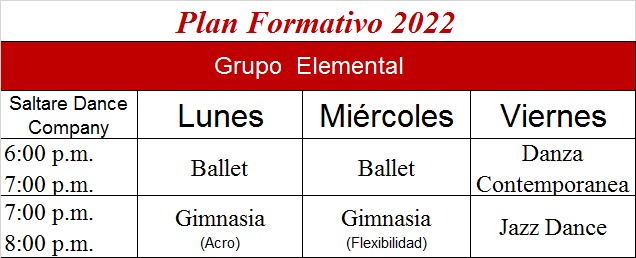 Desde los 10 años hasta los 17 el grupo elemental tiene 6 clases semanales, además de las clases de ballet y gimnasia se agregan clases de Jazz y  de Danza Contemporánea.